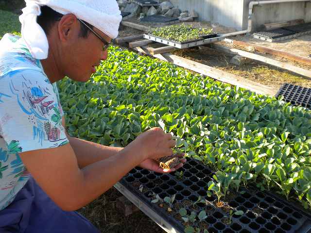 ちょうど、一週間前に稲刈り作業を終えたばかりの田んぼが、一週間後には早くも小さなキャベツの苗が植わる田んぼへと様変わり。本当に忙し〜い。トラクターで耕運作業に植床の準備と慌ただしく作業が進む。それにしても、日中はお日様ギラギラの炎天下での作業はかなり苦痛(>_<)もう、9月も後半なのに、今日の最高気温30℃越えの真夏日。作業服も汗でビッショリに・・・・。でも、ここ数日は明けても、くれてもキャベツ、キャベツ。夢にまでキャベツがでてきそうだ(^^ゞちなみに、このキャベツの作付け面積昨年の約3倍だけど(^_^;)収穫は来春の3月後半。カーネの最盛期とキャベツの最盛期が合体するの間違いなさそうだ(*_*)誰か、この最盛期にはお手伝いに来てくださいよ^m^